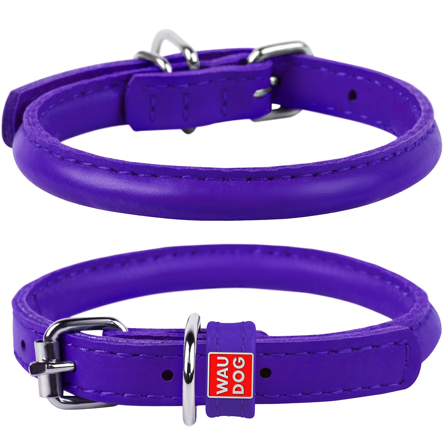 Waudog Leather Round Dog Collar 53-61CM PURPLE